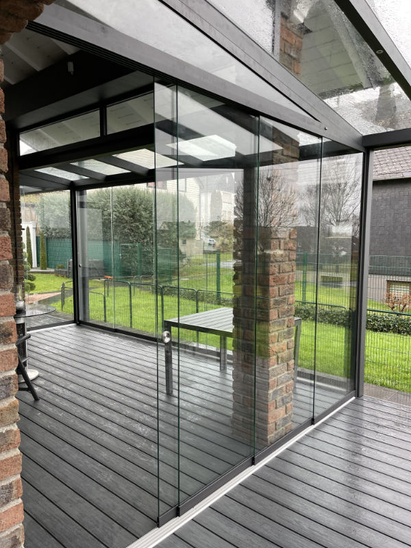 Durch Glaselemente wird Ihre Terrasse zum geschützten Kurort. Sparen Sie sich das hin und her Schleppen, Aufräumen oder Abdecken Ihres Inventars.